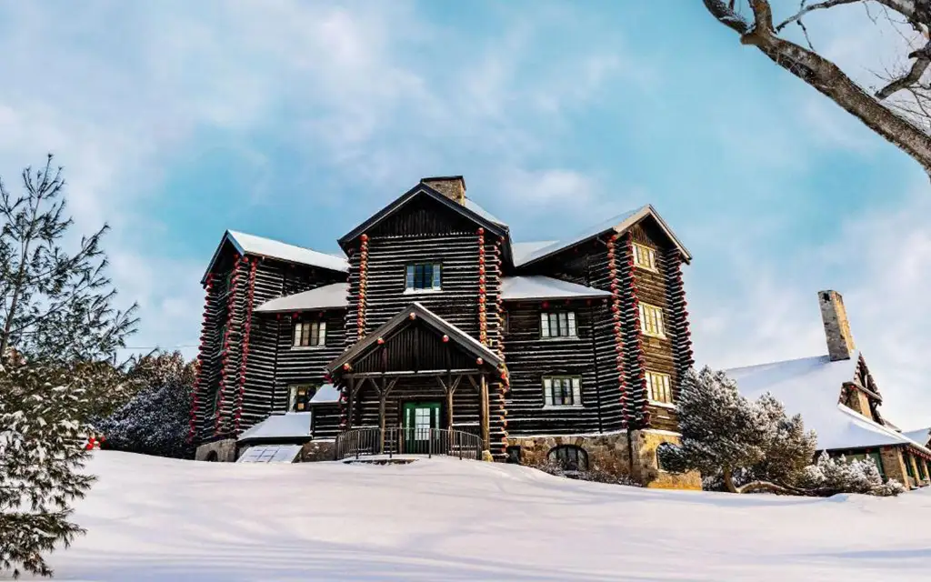 Construit en 1930, ce château emblématique se distingue par son architecture en rondins spectaculaire, avec d'immenses poutres de bois et une cheminée majestueuse dans le hall central. Les chambres spacieuses présentent un décor rustique élégant, une literie haut de gamme et des vues magnifiques sur la rivière ou les jardins. Les clients peuvent savourer des repas gastronomiques au restaurant Aux Chantignoles, profiter de soins de spa luxueux ou s'adonner à une foule d’activités de plein air comme le golf, le ski, l'équitation ou le kayak. Ce lieu riche en histoire et en confort est parfait pour ceux qui cherchent à allier aventure et raffinement.